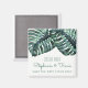 Bodas tropicales salvan el imán de dátiles con grandes hojas de monstera y una tipografía retro mod inspirada en el pueblo de la playa.
