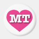 Este imán cuenta con un vibrante corazón rosado caliente que contiene las letras blancas altas del funda MT, la abreviatura oficial de Montana, el estado del tesoro.