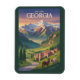 Diseño de viajes vector retro de Georgia. Desde las calles empedradas de Tiflis hasta los altibajos del Cáucaso, Georgia ofrece una experiencia única de viajes diversa y acogedora.