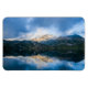 Un imán flexible con una hermosa foto natural. Montañas en el fondo con un tranquilo lago en primer plano. Fotografía serena y relajante.
