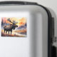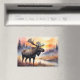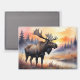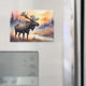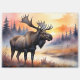 Esta serena pintura acuarela captura un majestuoso alce de pie elegante al amanecer, bañado en cálidos tonos dorados. Las suaves pinceladas y el ambiente nebuloso crean un ambiente tranquilo e inspirado en la naturaleza, perfecto para los amantes de la vida silvestre y el arte paisajístico.