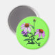 Una imagen distintiva de brotes y flores de conflor violeta contra un fondo verde brillante. Manténgase uno en su frigorífico, en su armario, en su lavavajillas o en su superficie metalizado favorita.
