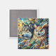 El arte de Ai representaba a un lobo y búho en un estilo de mosaico de azulejos. Ojos azules lobo y un imán de búho serio. Genial para cualquiera que ame la vida salvaje.