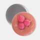 Imán frigorífico con deliciosa frambuesa y postre mousse de chocolate.
