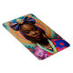 Imagen de una mujer africana con un gran arco floral y medallón. Esta es una imagen creada por IA con diseño de temática floral.