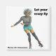 Pasar un buen rato es universal y esta mujer extraterrestre lo está pasando muy bien patinando en el camino. Esta imagen de fantasía muestra a una mujer alienígena amarilla patinando en una plaza del parque pasándola muy bien. Pintada con acrílicos en el tablero de lona la imagen de fantasía ilustra que pasarla bien es un deseo común e incluso extraños extraterrestres amarillos con pelo puntiagudo pueden disfrutar con sólo un par de patines roller y una superficie plana. Un regalo de este imán de botón del refrigerador de arte de skater de rodillos alienígenas es perfecto para esa persona a la que le gusta divertirse dejando volar su loca.