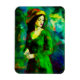 Una pintura generada por IA de una mujer con un vestido verde y un gorra