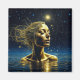 Arte de IA que representa a una hermosa mujer sumergida en el agua bajo las estrellas sumida en pensamientos profundos. Arte surrealista pacífico y sereno; arte de fantasía mística. Paz, serenidad, amor y armonía.