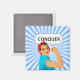 Imán vintage estiloso mujer empoderada & texto conquistar editable en blanco y azul claro.