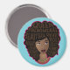 Imán Mujeres motivadoras negras, pelo natural, azul