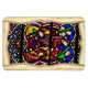 vintage art with beautiful stained-glass window in multi colours with christ and his apostles.