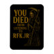 Este diseño atrevido y satírico presenta el Parador Grim junto con el texto "Muriste de escuchar a RFK Jr." Perfecto para los que disfrutan del humor negro, la parodia política y la vestimenta para hacer declaraciones. Ideal para fiestas de Halloween, reuniones de protesta o simplemente para iniciar una conversación con amigos.