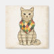A charming vintage-inspired cat made from aged sheet music, wearing a colourful harlequin heart pendant. This design is perfect for gifts, stationery, home decor, and accessories — ideal for cat lovers, music lovers, valentine and anyone who loves elegant vintage collage artwork.