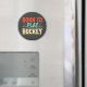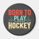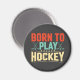 Imán de temas de hockey con texto que dice Nacido para jugar al hockey!