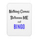 "Nada viene entre mí y BINGO" es el dicho perfecto para el jugador ávido. Añade este imán a tu cocina u oficina. Fondo blanco con letras negras. La palabra BINGO en azul audaz.