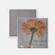 Personalizar el Naranja Daisy Boda Square Magnet con los nombres personales de la novia y el novio y la ceremonia matrimonial para crear un favor de fiesta, mantener un regalo o guardar la fecha. Este elegante imán boda personalizado florido cuenta con una fotografía floral de la parte trasera de una margarita gerber naranja en el tallo, en un jarrón de vidrio.