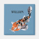 Añade un nombre a este imán para crear un pequeño regalo personalizado que es perfecto para quien le guste relajarse junto a su estanque de koi. Presenta un ilustracion de estilo realista de un pez koi o carpa ornamental en blanco, naranja y negro sobre un fondo azul claro con un nombre en negrita con letras negras.