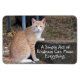 Este imán muestra un bonito gato de tabby naranja con los ojos verdes más dulces y la cara más adorable. Charlie está sentada frente a un trozo de árbol con su pata izquierda descansando encima de unos cuantos pedazos de comida de gato dispersos. Este gato viene a visitar nuestra casa de vez en cuando sólo para decir "Hola", y siempre nos aseguramos de agradecerle por visitarlo dejándole algunos alimentos. Las palabras en este imán dicen: "Un simple acto de bondad puede significar todo".