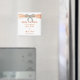 Este hermoso ahorrador imán de fecha es una manera elegante y duradera de anunciar su gran día. Personalice el imán cambiando el texto en los campos proporcionados. Puede cambiar el estilo de fuente, el tamaño y el color, así como el color de fondo.