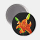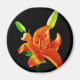 Un naranja vibrante se enfrenta a un marcado contraste frente a un telón de fondo negro dramático.