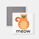 "Mau" dice este divertido gato personalizado naranja con oscuras rayas naranjas. Lo veo aquí en un imán blanco cuadrado. Genial para cualquier amante de los gatos.