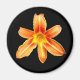 Cierre de un lirio tigre naranja (Lilium bulbiferum), aislado en un fondo negro