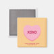 XOXO conversación rosa El día de San Valentín corazón moderno diversión lindo e imán favoritos personalizados. Texto de personalizable completo. Así que puedes personalizar el mensaje dentro del corazón así como el texto inferior y hacerlo único. o borrarlo. Corazón rosado sobre fondo naranja claro. Todos los colores son editables. Estos imanes son grandes regalos y favores para la celebración de amigos del Día de San Valentín en la escuela infantil.