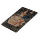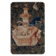 depicting the beautiful Narcissus, a hunter from Thespiae in Boeotia, (present day Karaburun, İzmir, Türkiye) gazing lovingly/obsessively at his own reflection in the waters of a stone fountain, surrounded by an ornate background of animals, birds, and flowers