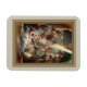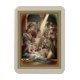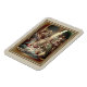hermosa acuarela de color vintage acuarela de la escena de la natividad con madonna y niño, joseph, tres sabios con regalos, y multitudes de personas afuera, con un encantador rayo de luz sobre el bebé jesús que tiene la mano levantada en un saludo a uno de los sabios que tiene las manos en oración, barba blanca larga, manto verde, corona dorada y dar un bote de color de cobre. don, otro sabio hombre con turbante blanco parado y cargando una caja como regalo, otro de pie y también cargando un regalo, maría tiene a la niña en su regazo y lo protege con su pañuelo blanco en la cabeza, todo dentro de un edificio con columnas y una multitud afuera a lo lejos y un hombre mirando al cielo nocturno.