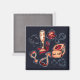 Cheeky 2"×2" square magnet featuring playful hand-drawn naughty dice, champagne glass with hearts, glossy lips, bows, and romantic symbols on deep navy background. Perfect spicy fridge decor, adult humor gift, bachelorette party favor, Valentine's surprise or naughty bedroom accent.