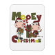 Dos vacas en casquillos de media, regalos del navidad, luces del día de fiesta, bastones de caramelo, y texto rojos que lee el "navidad de Mooey" en las camisetas del día de fiesta, las tazas, las tarjetas, los pegatinas, las bolsas de asas, los relojes de pared, las cajas del recuerdo, los ornamentos, los llaveros, y otra ropa y regalos lindos del día de fiesta del tema de la vaca.