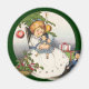 Imán Navidad vintage, feliz Chica jugando con muñecas
