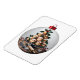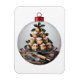 Navidades Bauble Profiteroles Baker Magnet. Una bella Navidad bauble cuenta con una encantadora torre de profiteroles, crema que respira, rodeada de hojas huecas, bayas rojas y utensilios de horneado como un alfiler, una tabla y moldes, diseño perfecto para cualquier apasionado del horneado o panadero apasionado.