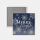 Añada un toque caprichoso a su cocina en esta temporada de vacaciones con un imán de Navidades de cerezos azules y copos de nieve brillantes. El diseño del imán presenta copos de nieve cayendo con el saludo de Merry y Bright en una fuente moderna y un suave overlay blanco. Artículos de vacaciones adicionales disponibles con este diseño.