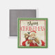 Una clásica imagen vintage de un res adecuado para Santa Claus llevando una bolsa de regalos y sosteniendo un avión de juguete, con las palabras "Feliz Navidad" en la parte superior, con una frontera roja y verde por todas partes. Crédito de la imagen. Pixabay.com: Imagen #2726993