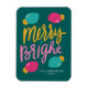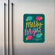 Amplíe esta temporada navideña dándoles a sus seres queridos un imán de vacaciones colorido y brillante. El imán de vacaciones no fotográfico presenta "Merry + Bright" en oro, turquesa, con letras rosas sobre un fondo verde azulado. Personalice el imán de vacaciones moderno añadiendo su nombre y el año en blanco. Diseñado para coordinar con nuestra colección de feriados de Merry & Bright Navidades Lights.