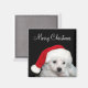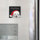 Un cachorro de Bichon Frise en un Santa que te desea un imán de fotos de Feliz Navidad. El texto puede cambiarse o eliminarse con el botón PERSONALIZAR