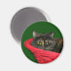 Gato de Tortoiseshell en un imán fotográfico de Navidades de cesta roja