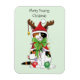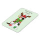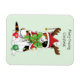 Un gato calico, vestido con Navidades, luces de vacaciones, cánticos rellenos, sombrero de Santa Navidad y una gran reverencia verde sobre un fondo verde claro, ¡El gatito no está contento!
