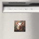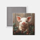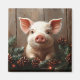 Magnet con pintura al óleo digital de un lindo cerdo rodeado de conos de pino y guirnaldas de pinos con luces de Navidad. El fondo de madera aporta un toque rústico a las obras de arte.