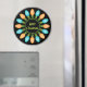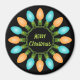 Este imán Navidad presenta texto personalizado y un colorido gráfico que representa un círculo de bombillas festivas en azul y naranja.