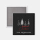 Este imán minimalista de Navidades cuenta con una hilera de simples pinos blancos sobre un elegante fondo negro. La palabra "Feliz Navidad" está escrita en un elegante guión rojo, y la parte inferior del imán está personalizada con el nombre de la familia y el año "2024". Este elegante y moderno diseño es perfecto para añadir un toque de alegría vacacional a su casa o oficina.