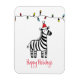 El nuevo diseño vacacional moderno y no tradicional para 2020 presenta un caprichoso ilustracion de cebra con sombrero rojo de Santa, una cadena de luces de vacaciones y texto de personalizable "Felices Fiestas"