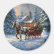 Santa conduciendo un trineo de un caballo para entregar regalos de Navidad en un pequeño pueblo