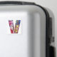 V letra del alfabeto inicial,diseño de monograma de negrita artístico caprichoso. Santa en la nevada noche de invierno jugando arpa en la luz de la luna con búho. Pintura acrílica. por Bulgan Lumini (c) com