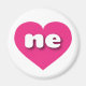 Este imán cuenta con un vibrante corazón rosado caliente que contiene las letras fundas negras, blancas, redondeadas y bajas, una abreviatura juguetona para Nebraska, el estado de la cascarilla.