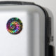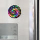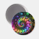 Este imán presenta mi espiral fractal llamada "Nebulosa Arcoiris" con colores rojo, naranja, amarillo, verde, azul, violeta y rosa con fondo negro.