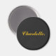 Imán negro elegante con texto de nombre personaliz