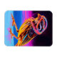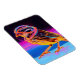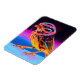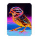 Un llamativo ilustracion de neón de un gorrión adornado con anillos brillantes y acentos vibrantes, ambientado en un audaz fondo inspirado en la onda sintética de púrpura, azul y rosa. Esta obra de arte retro-futurista de aves es perfecta para los aficionados a la estética de vaporwave, el arte digital brillante y los retratos surrealistas de animales.