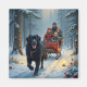 Imán Newfoundland Dog Snowy Sleigh Ride Christmas